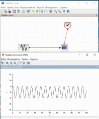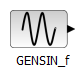 Схема взаимодействия блоков и осциллограмма работы источника сигнала GENSIN_f