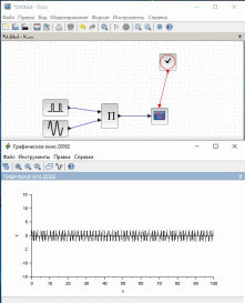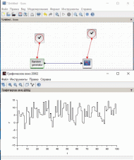Схема взаимодействия блоков и осциллограмма работы источника сигнала RAND_m