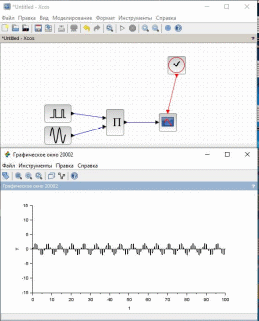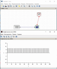 Схема взаимодействия блоков и осциллограмма работы источника сигнала PULSE_SC