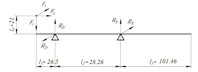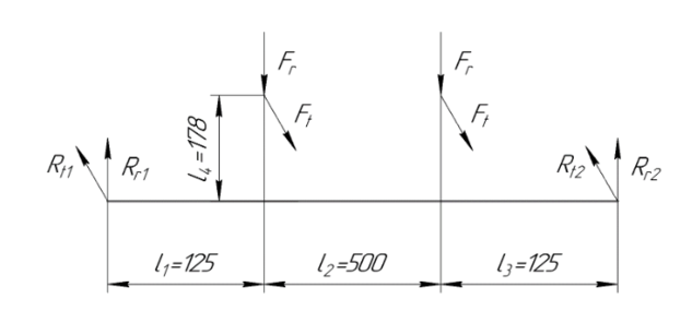 В дальнейших расчетах направления векторов реакций опор от действия муфты условно принимают совпадающими с направлениями векторов реакций от сил зацеплении.