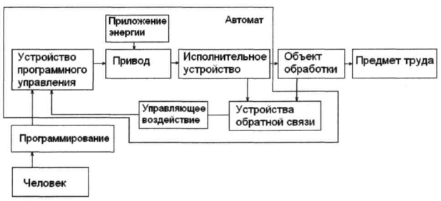 На второй стадии автоматизации используются такие системы управления, которые обеспечивают не только выполнение заданной программы работы машины, но и автоматически, без вмешательства оператора, реагируют и поддерживают нормальные условия работы т.к. используется замкнутые системы управления (СУ) - системы с обратными связями. Применение устройств с обратной связью оставляет оператору функцию первичной наладки машины (программирование).