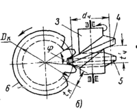 На рис.5,б показана схема получервячного механизма периодического движения. Для прерывистого поворота червячного колеса 6 на угол φ червяк З выполняется двухзаходным, т. е.