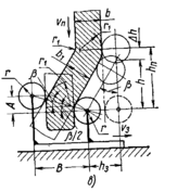 На рис. 6 даны расчетные схемы клинового преобразующего механизма. Клиновой механизм одностороннего действия прост в изготовлении, однако требует применения специального устройства для поджатия клина к ползушке (рис. 6, а) или ролику (рис. 6, б). Клиновый механизм двустороннего действия сложнее в изготовлении, но использование его исключает дополнительные приспособления для прижима роликов к клину.