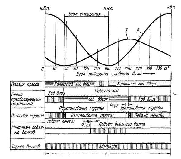 Рис. 2 Циклограмма работы кривошипного пресса с валковой подачей
