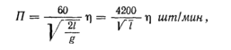 g = 9,81 м/сек ускорение силы тяжести. Коэффициент выдачи для рассматриваемых бункеров с числом оборотов (ходов) захватного органа n = 1004-200 ход/мин может