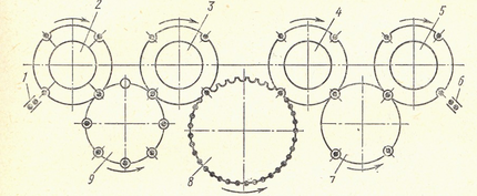 Схема такой линии показана на рис. 3, где рабочие роторы 7,8,