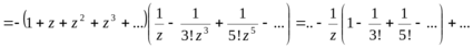 - существенно особая точка, вычет в ней вычисляется единственным способом – непосредственным разложением функции в ряд Лорана и вычислением коэффициента при –1 степени.