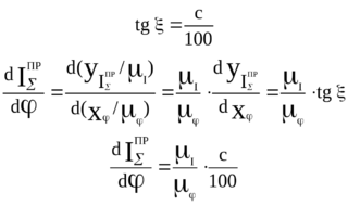 В соответствии с определением производной проведем касательную к кривой в точке i и определим тангенс угла наклона этой касательной. Для этого проведем нормаль через точку i. Тогда