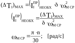 Изменение м от м_max до м_min приводит к изменению кинетической энергии первой группы звеньев (ΔТI), которое равно: