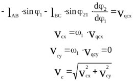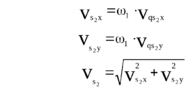 Продифференцируем (7) по обобщенной координате и получим аналоги линейных скоростей точек S2 в проекциях на оси х и у: