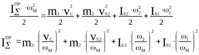 Приведение масс основано на равенстве кинетических энергий реальных звеньев и звена приведения одномассовой модели.