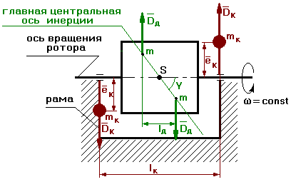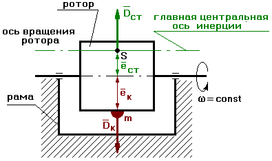 При этом центр масс ротора не лежит на оси вращения, и главная центральная ось инерции повернута на угол относительно оси вращения.