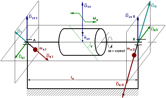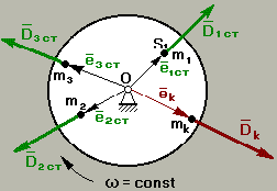 При вращении ротора возникает статический дисбаланс Dcт. Для устранения статической неуравновешанности по линии действия Dcт устанавливают корректирующую массу mk на расстоянии еk от оси вращения, и эта корректирующая масса создает дисбаланс: