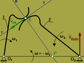 Для нахождения МЦС к относительным линейным скоростям VO2O1 и Vck восстанавливают перпендикуляры, на пересечении которых получают точку Р. – МЦС в относительном движении.