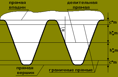 Все параметры по делительной прямой и по прямым, параллельным делительной прямой, стандартизированы.