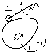 звено 2 (толкатель) совершает возвратно–вращающееся движение с центром вращения в точке О2.