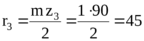 После подбора чисел зубьев определяют радиусы делительных окружностей колес: