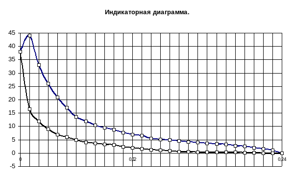 m2 = 24.2 кг, m3 = 36.2 кг, момент инерции - I 2S = 1.21 кг м2, I 10 = 2.72 кг м2, максимальное давление в цилиндре - pmax = 4.4 МПа , коэффициент неравномерности вращения [ ] = 1/80 , индикаторная диаграмма (приведена на рис. 8.3) .