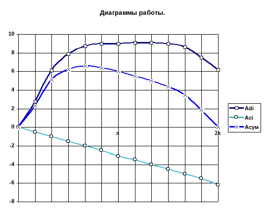 Построение диаграмм работы движущей силы, сил сопротивления и суммарной работы.