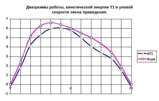 Диаграмма кинетической энергии первой группы звеньев представлена на рис. 8.9.