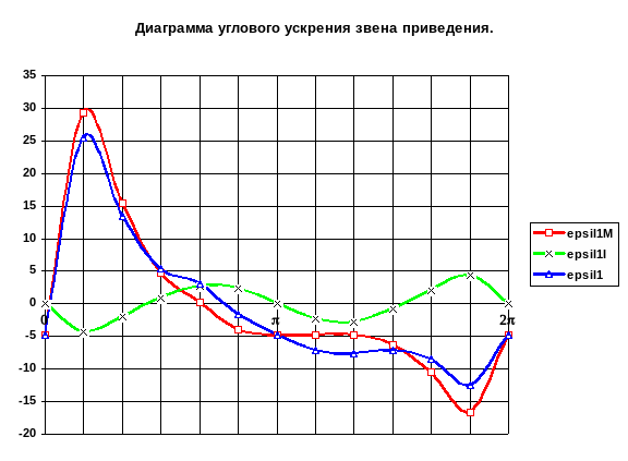 Как отмечено ранее для расчета углового ускорения звена приведения 1 = f(1 ) лучше пользоваться формулой :