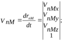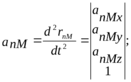 При кинематическом анализе манипулятора в прямой задаче необходимо определить линейные и угловые скорости и ускорения схвата при заданных угловых и линейных обобщенных скоростях и ускорениях (обычно относительных скоростях и ускорениях в кинематических парах механизма). В обратной задаче по заданному закону изменения скоростей и ускорений схвата определяются законы изменения скоростей и ускорений в КП или на выходных звеньях приводов. Решение прямой задачи кинематики для точки М схвата можно получить продифференцировав четвертый столбец матрицы Тn по времени