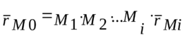 Положение некоторой произвольной точки М в системе координат звена i определяется вектором rMi , а в системе координат звена (i-1) – вектором rMi-1. Эти радиусы связаны между собой через матрицу преобразования координат Мi