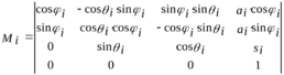 В этих матрицах переменные si и i соответствуют относительным перемещениям звеньев в кинематических парах и являются обобщенными координатами манипулятора, определяющими конфигурацию механизма в рассматриваемом положении. Переменные ai и i определяются конструктивным исполнением звеньев манипулятора, в процессе движения они остаются неизменными.