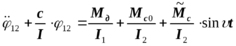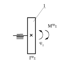 Согласно принятым допущениям приведем движения всех подвижных звеньев системы к движению с частотой (или скоростью) вала двигателя. Для этого определим приведенные жесткости, моменты и моменты инерции. При этом жесткости приводятся из условия равенства потенциальных энергий деформации, моменты - из условия равенства работ, моменты инерции - из равенства кинетических энергий. Для нашего примера: