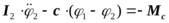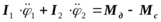 . Уравнения движения динамической модели запишем в виде условий кинетостатического равновесия звеньев 1 и 2:
