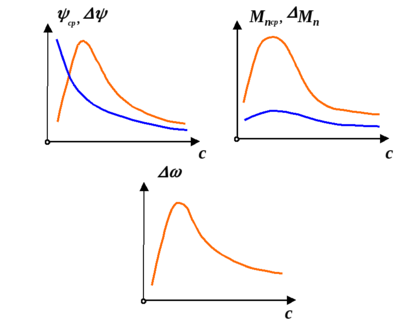 Рассмотренные выше уравнения движения механической системы можно использовать при моделировании поведения этой системы при различных значениях ее параметров. Ниже (на рис. 21.7) приведены результаты исследования влияния жесткости с на неравномерность вращения , момент в приводе Мп и на динамическую ошибку .