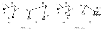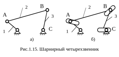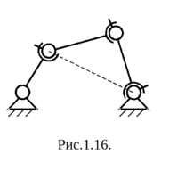В соответствии с формулой Чебышева число степеней подвижности шарнирного четырехзвенника, показанного на рис. 1.15, а, составляет: Wп=3(4-1)-24=1.