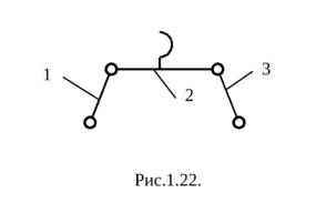 Если N=3, то в группе Ассура могут быть четыре низшие КП и одна высшая, как на рис. 1.22 (рн=4, рв=1, Wпг=33-24-1=0), либо три низших и три высших КП (Wпг=33-23-3=0), либо две низших и пять высших (Wпг=33-22-5=0); такие группы уже не реализуют.