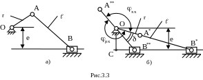 ассмотрим пример синтеза внецентренного кривошипно-ползунного механизма с использованием коэффициента производительности К (рис. 3.3, а).