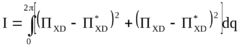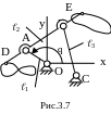 ложные кривые можно получить, подбирая точки на шатуне (точки D и E на звене АВ, рис. 3.7). Пусть ПXD(q), ПYD(q) – заданная функция положения точки D (в проекциях), а П*XD(q, l1,l2, l3,хC,уС), П*YD(q,l1,l2, l3, хC,уС) – функция положения, которая получается при текущем наборе параметров механизма l1, l2, l3, хC,уС. В качестве критерия синтеза можно выбрать функцию I (функционал):