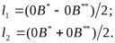 Из рассмотрения косоугольного треугольника B*OB** составим третье соотношение: