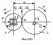 Из определения мгновенного центра скоростей следует, что относительная скорость в точке Р равна нулю, т.е. VP1 = VP2. Следовательно: