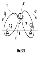, прижимается усилием Р к ведомому шкиву 2. Сила трения, возникающая в кинематической паре К, приводит во вращение ведомый шкив 2, который начинает вращаться со скоростью