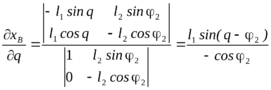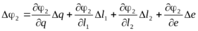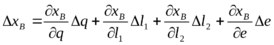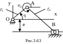 Пример. Определим аналитическим методом ошибки положения хВ и 2 кривошипно-ползунного механизма, вызванные первичными ошибками q, l1, l2 , е (рис. 3.63).