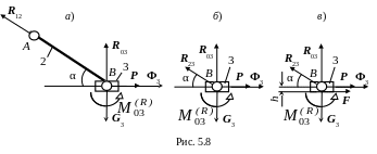 Это уравнение – нелинейное, так как функция signR03 – нелинейна. Найдем решение этого уравнения при различных соотношениях между α и f, а также G3 и Р + Ф3 . Рассмотрим четыре возможных варианта (табл. 5.3):