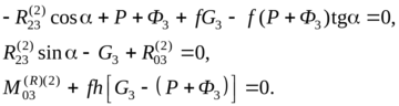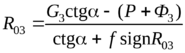 –R23cosα + (P + Ф3) + fR03signR03 = 0,