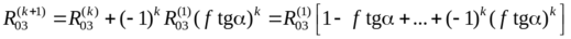 , найденной в к-м и (к+1)-м приближениях, с ростом к увеличивается, а сила реакции R03 на каждом приближении меняет знак. При f tgα = 1 сила реакции