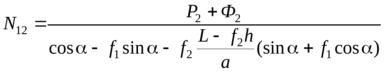 Если L > a + f2h , то при N12 > 0 будет действительно NA < 0 и NB > 0. Подставим NA и NB в первое уравнение (5.28) и найдем из него реакцию N12: