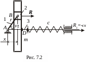 На рис.7.2 показан пружинный разгружатель, предназначенный для разгрузки от силы инерции, создаваемой поступательно движущейся кулисой синусного механизма. Здесь упругая сила пружины R1, связывающей кулису со стойкой, компенсирует силу инерции Ф3 массивного звена 3, уменьшая тем самым реакции в кинематических парах А и В и переменную составляющую движущего момента, действующего на кривошип 1: