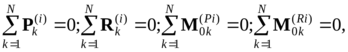 – главные моменты соответствующих сил относительно некоторого центра 0. Сложим уравнения (7.10), соответствующие всем k от 1 до N. В соответствии с третьим законом Ньютона