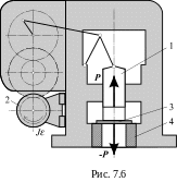 , действующие на пуансон и на матрицу 4. Эти силы являются для машины в целом внутренними силами, поэтому на основание они не действуют. Однако в момент удара происходит резкое уменьшение скорости пуансона, а вследствие этого и всех звеньев жесткого механизма, включая ротор двигателя, обычно обладающий большим моментом инерции J. Возникает переменный инерционный момент J, воздействующий на основание пресса. Частота этого воздействия определяется числом циклов машины в единицу времени.