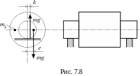 Уравновешивание жесткого ротора. При статической балансировке жесткого ротора добиваются выполнения условий (7.19). Для этого ротор устанавливают на опоры, представляющие собой призматические линейки (рис. 7.8). Установкой балансировочного груза mb выводят центр масс ротора на ось вращения, добиваясь того, чтобы ротор, установленный в любое начальное положение и отпущенный без начальной скорости, не катился по призматическим опорам.
