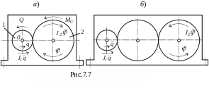 машина является полностью уравновешенной. Еще раз подчеркнем, что уравновешенность нарушается, если хотя бы одна из активных обобщенных сил становится внешней. Так, например, если ротор 2 на рис.7.7, а является ротором вентилятора, а момент MС создается аэродинамическими силами, на корпус машины б
