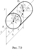 Пусть z1 и z2 – координаты плоскостей исправления (рис.7.9), m1 и m2 – массы балансировочных грузов, x1, y1, x2, y2 – их координаты в плоскостях исправления (система 0xyz связана с ротором); m – масса ротора, xc, yc – координаты его центра масс. Тогда условия ( 7.19) будут выполнены, если