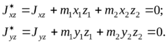 Условия (7.22) означают, что центр масс системы, состоящий из ротора и балансировочных масс, лежит на оси вращения. Составим выражения для центробежных моментов инерции